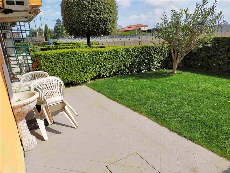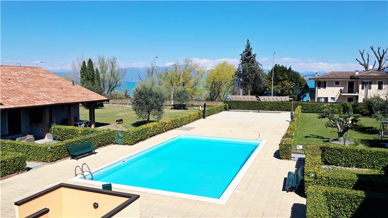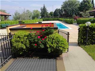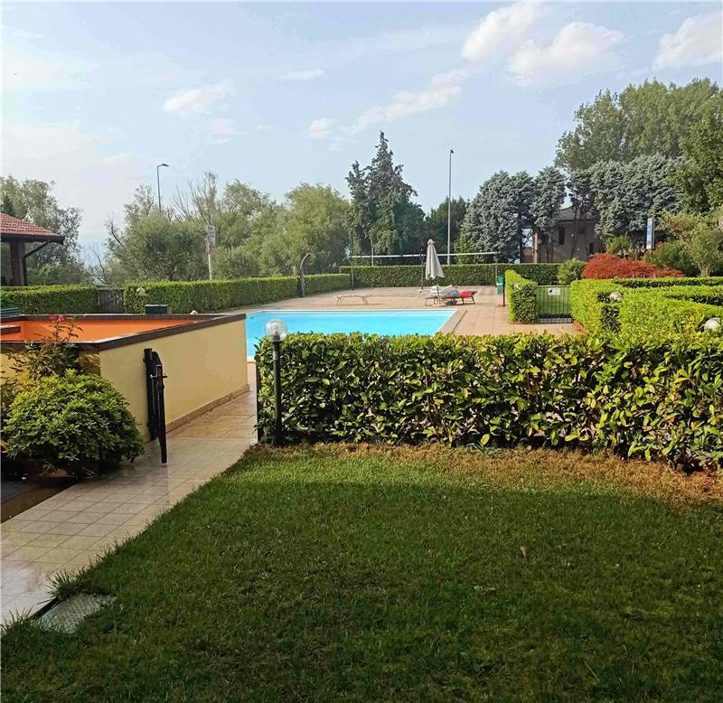 Peschiera del Garda (San Benedetto di Lugana): in località Bassana, fronte lago, all'interno di un elegante e contenuto residence di recente costruzione (anno 2003) funzionale appartamento di c.a. 66 mq. commerciali al piano terra con accesso autonomo e giardino di proprietà esclusiva. L'unità si compone di ingresso, soggiorno con angolo cottura (con divano letto), disimpegno notte, camera da letto matrimoniale, guardaroba finestrato (uso cameretta singola), servizio con doccia e porticato. Il giardino, della superficie di c.a. 80 mq., abbraccia l'unità su tre lati. Impianti autonomi con riscaldamento e raffrescamento a pompa di calore. Comodo garage al piano interrato. A servizio del residence una piscina a sfioro condominiale con plateatico/solarium. Ottimo come casa vacanze e/o uso investimento. Possibilità di acquistare l'immobile anche con eventuali agevolazioni fiscali primacasa trattandosi di residence non vincolato a RTA. Le spese condominiali sono molto contenute (solo c.a. 820,00 Euro/annui). Disponibile da subito. Arredamento compreso nel prezzo. Ottima opportunità. Classe Energetica F. Richiesta Euro 263.000,00. Per informazioni Studio Immobiliare ImmobilCASA. Tel. 045.7808581 Cell. 349.2589538